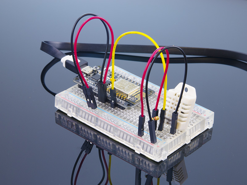 Visualize data from an internet-connected Temperature and Humidity sensor powered by the ESP8266 Serial to Wi-Fi adapter!