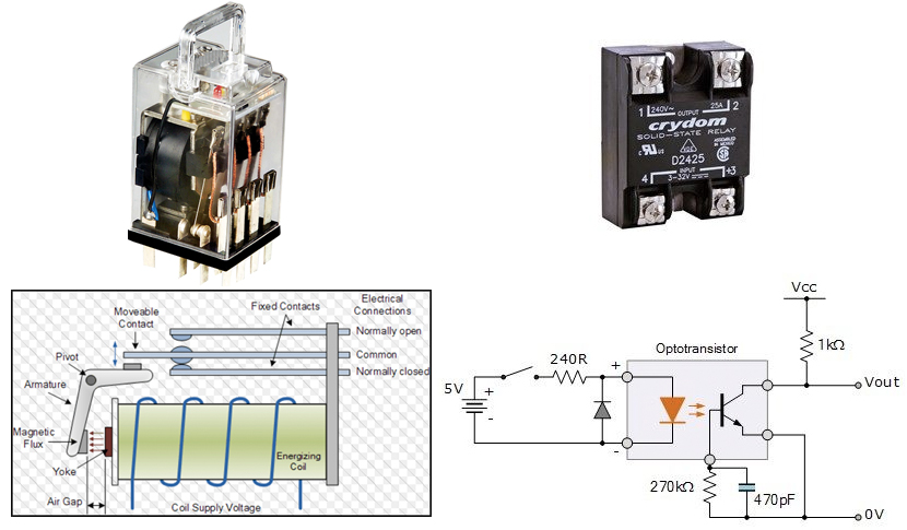 Relays are electronic switches, that is, switches controlled by the presence (or not) of an electric current. These devices are different from the more traditional mechanical switches, where a button or lever needs to be manually set in order to change the state of the switch.