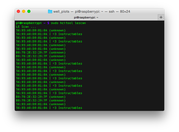 After installing the Bluetooth stack and successfully added the Bluetooth LE USB adapter to our Raspberry Pi we're ready to scan for nearby BLE devices.