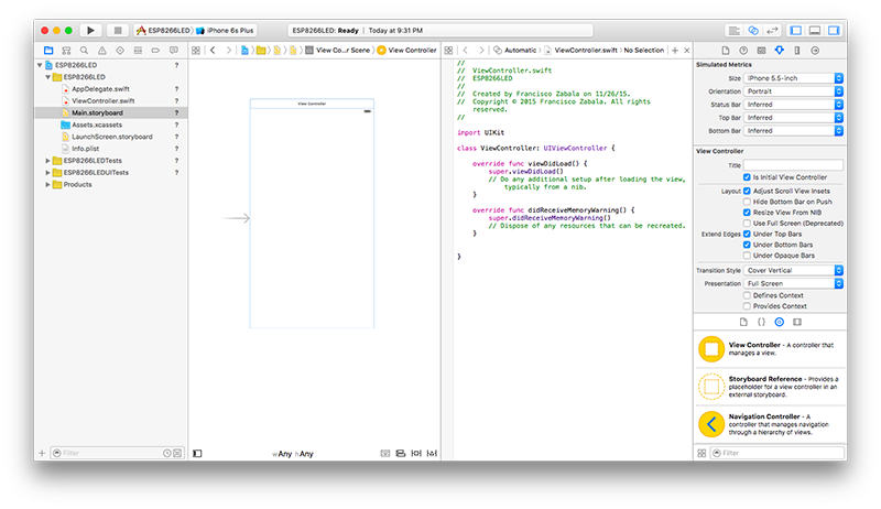 Now that we have most things set up, we're ready to start adding some objects to our storyboard, and write some code to add the desired functionality to our app.