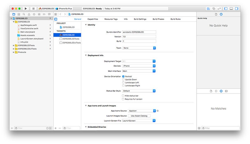 This guide will show you how to program an ESP8266 Serial to Wi-Fi module to run a web application that will control two LEDs in response to requests over http. Then, we’ll use Xcode and Swift 2 to build a basic iOS App that will allow us to control the state of the LEDs.