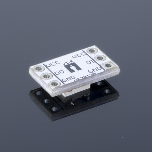 This tiny breakout board allows us to easily connect several WS2812B RGB LEDs, and control them all using a single digital output pin from a microcontroller or SoC like the ones on an Arduino or Raspberry Pi single-board computer, respectively.