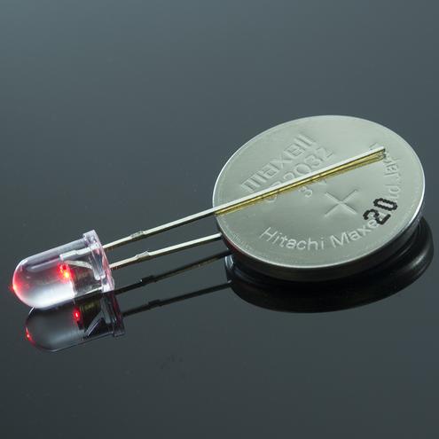 This pack of 5 red indicator 5mm LEDs are just the right size for your breadboard and for small projects. They can be powered with a 3V coin battery, and they require very little current.