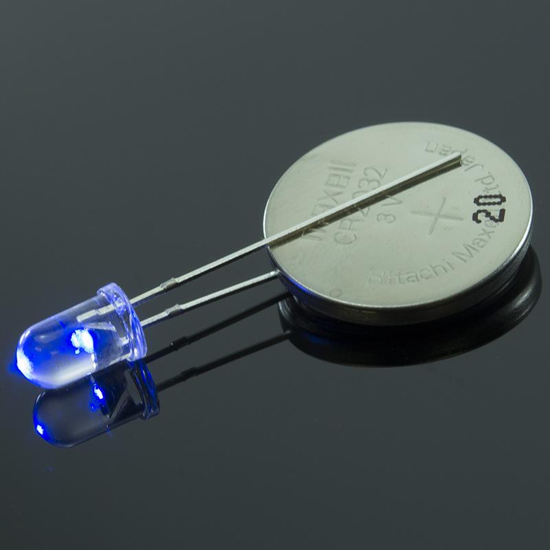 This pack of 5 blue indicator 5mm LEDs are just the right size for your breadboard and for small projects. They can be powered with a 3V coin battery, and they require very little current.