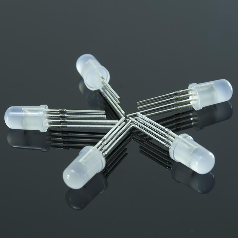 - 5-pack of 5mm, diffused, through-hole, ultra-bright WS2812B RGB LEDs