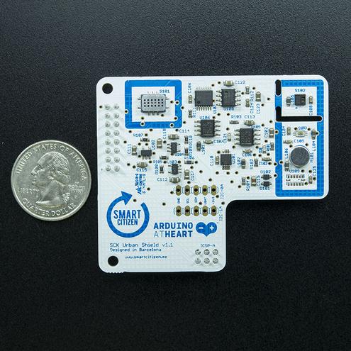 This is the first shield developed for the Smart Citizen platform. It carries an assortment of sensor to monitor several relevant environmental parameters: